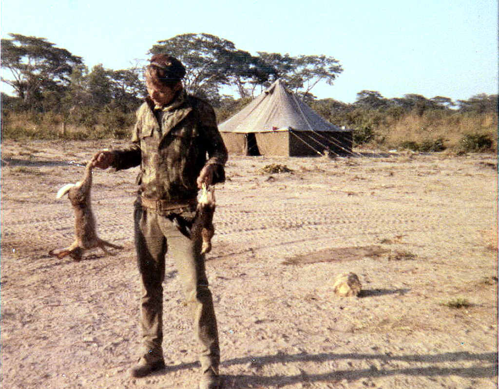 dia de caça em Cuvelai. Ao fundo, uma das tendas do