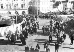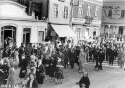 12. Frente ao Liceu para ouvir a saudação. 12A. Os estandartes, entre os quais os académicos de 1901 e 1930. 13. Os antigos alunos em frente do Liceu, na altura em que os saudava o Reitor.