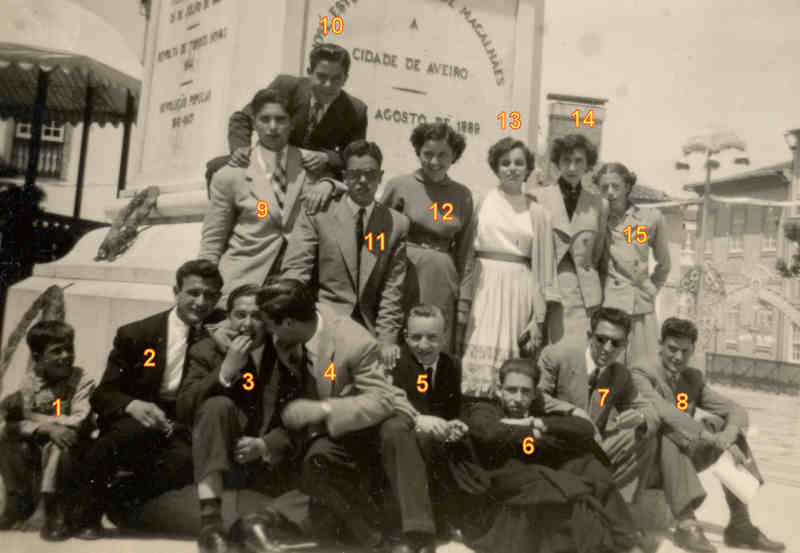 «1949 - Com alguns colegas do 4º e 5º ano do Liceu.» Foto 6x9 cm de Ulisses Pereira.