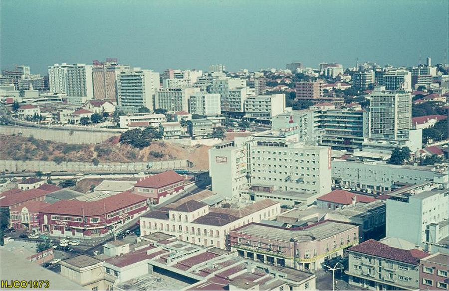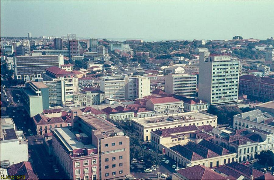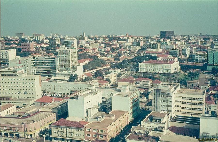 Aspecto de Luanda, tal como se pode observar no cimo do edifício do BCA. Pormenor da Mutamba, utilizando-se uma teleobjectiva.