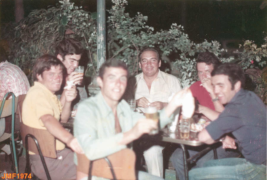 Numa esplanada de Luanda, pouco tempo antes do embarque de regresso a Portugal, na companhia do Capitão Samuel Alves Leandro e alguns furriéis da companhia.