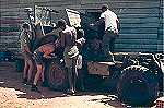 Efectuando a reparação do burro do mato, nome dado pelo pessoal à viatura, também conhecida por cabra do mato, um unimogue de dimensões mais reduzidas. (Slide refª 1143)