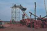 Trabalho de montagem dos novos depósitos de água, para abastecimento por meio de motor e canalização ligando o destacamento à zona de abastecimento de água. Trabalho de elevação do primeiro dos dois depósitos de chapa.  (Slide refª 1150)