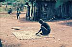 Nativo do povo de Marimba fabricando uma esteira.
