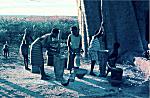 Mulheres moendo a fuba. Atentar