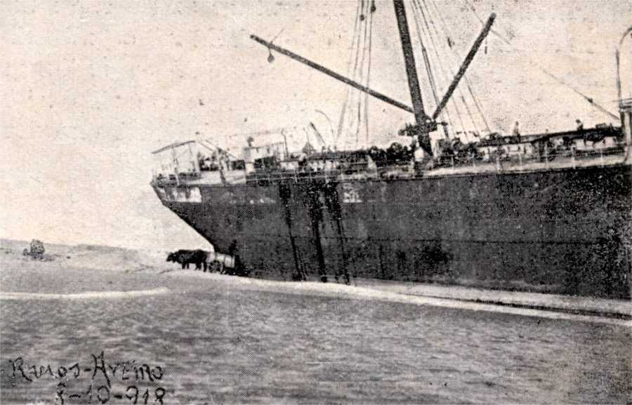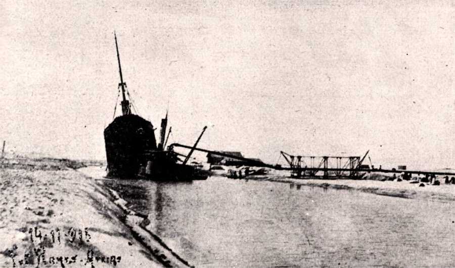 Parte do canal já percorrido pelo navio, em 14-11-1918.