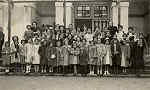 1 - Professoras, catequistas e alunas da catequese na porta da igreja do Carmo em 15/2/1953. NOMES