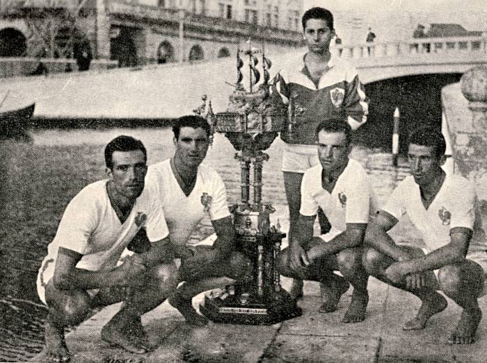 A tripulação de shell de 4, com o troféu Salazar, conquistado pela primeira vez porPortugal.