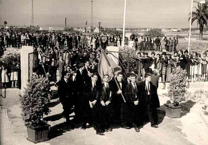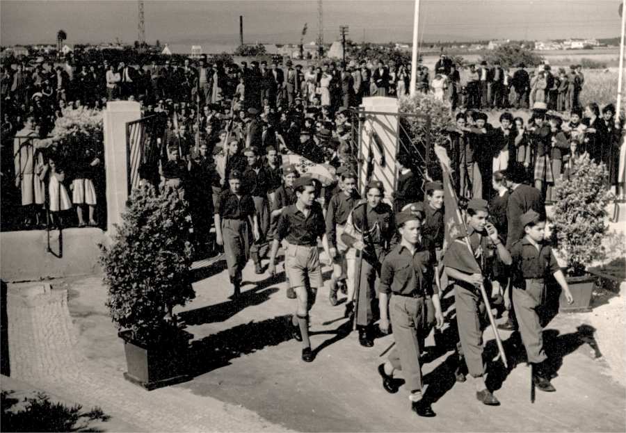 14.Cortejo da Mocidade Portuguesa ao passar os portões da nova escola.