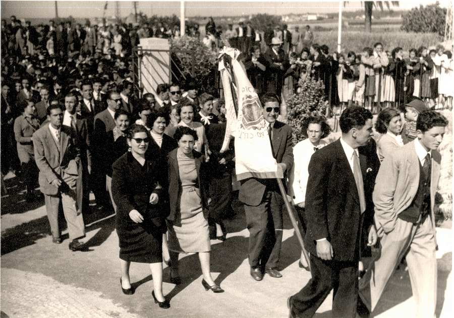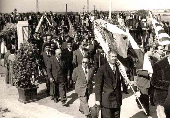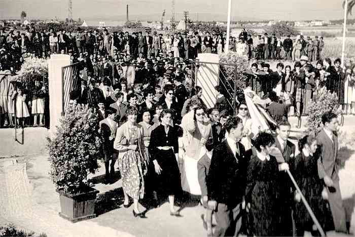 20.Operários das Fábricas João Nunes da Rocha e Paula Dias e Filhos ao passarem pelos portões da nova escola.