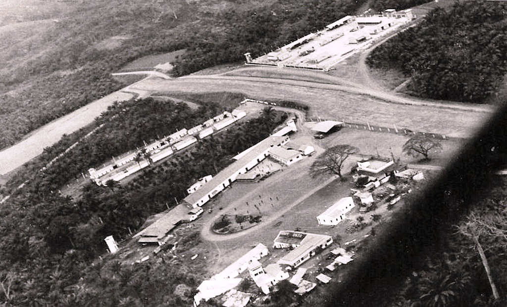 Vista aérea do aquartelamento com o nome do rio Onzo, na zona de Canacassala. Infelizmente, o detentor desta fotografia desconhece o nome do autor e a data em que a imagem foi captada.