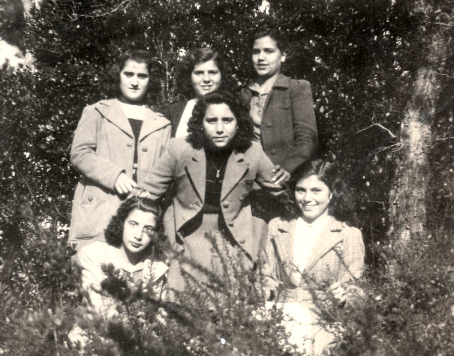 Esq. > dtª: Eufêmia Gaspar; Natércia; Celeste Henriques; Júlio Dias (atrás). Foto 6x9 de Júlio.