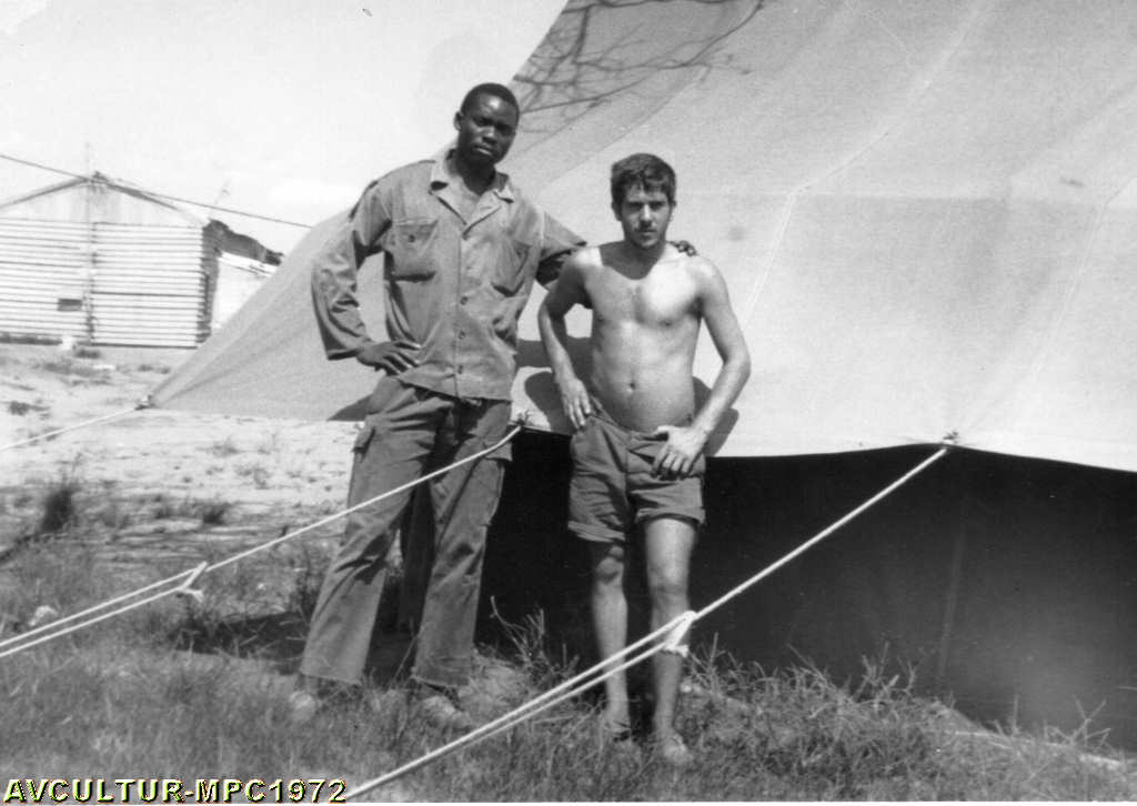 Manuel Pereira da Costa na companhia do Chibanguelulu, ambos da Companhia de Caçadores 1306 em 1972 no Quicua.