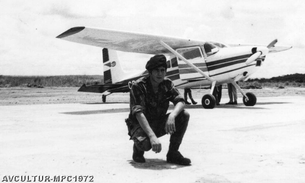 Manuel Pereira da Costa em frente da avioneta que permitiu que diversos elementos da Companhia 1306 tivessem o seu baptismo do ar.