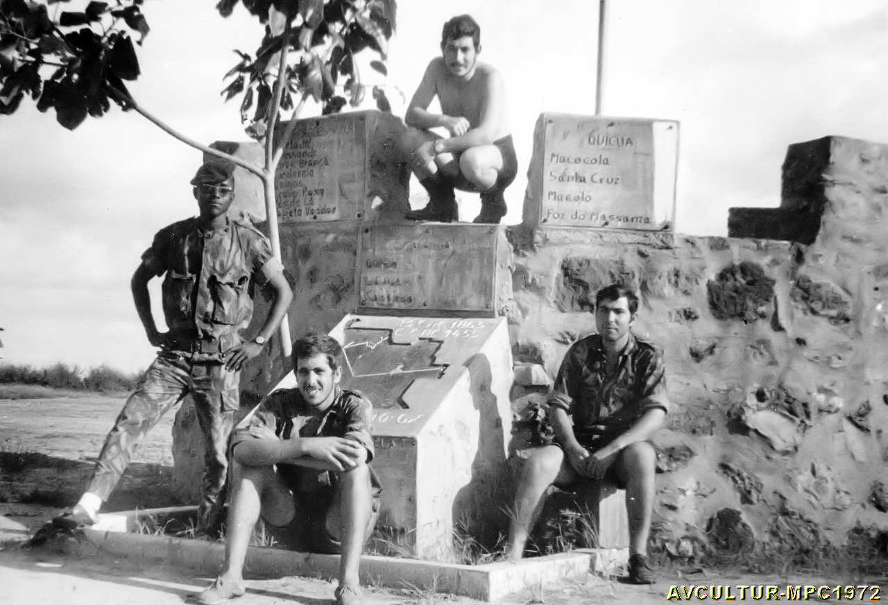 Elementos da Companhia 1306 em frente do monumento evocativo da passagem pelo local de outros grupos. NÚMEROS: 1.Manuel Costa; 2.Cazenga; 3.Freitas; 4.???.