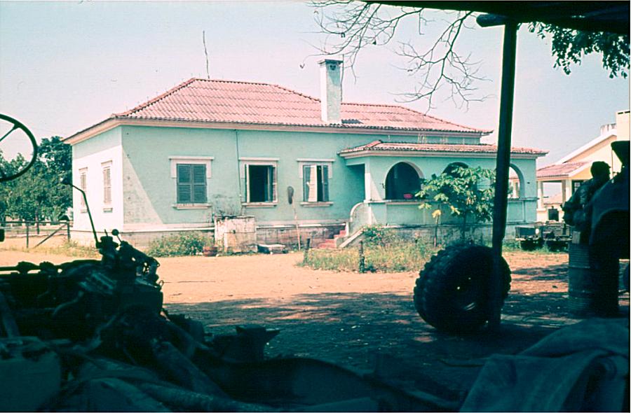Aspecto da messe de oficiais da 3ª Companhia de Caçadores do Bat. Caçadores 4511. Imagem obtida a partir do parque auto, situado nas traseiras do edifício. Sector de Uíje - Carmona - Angola.