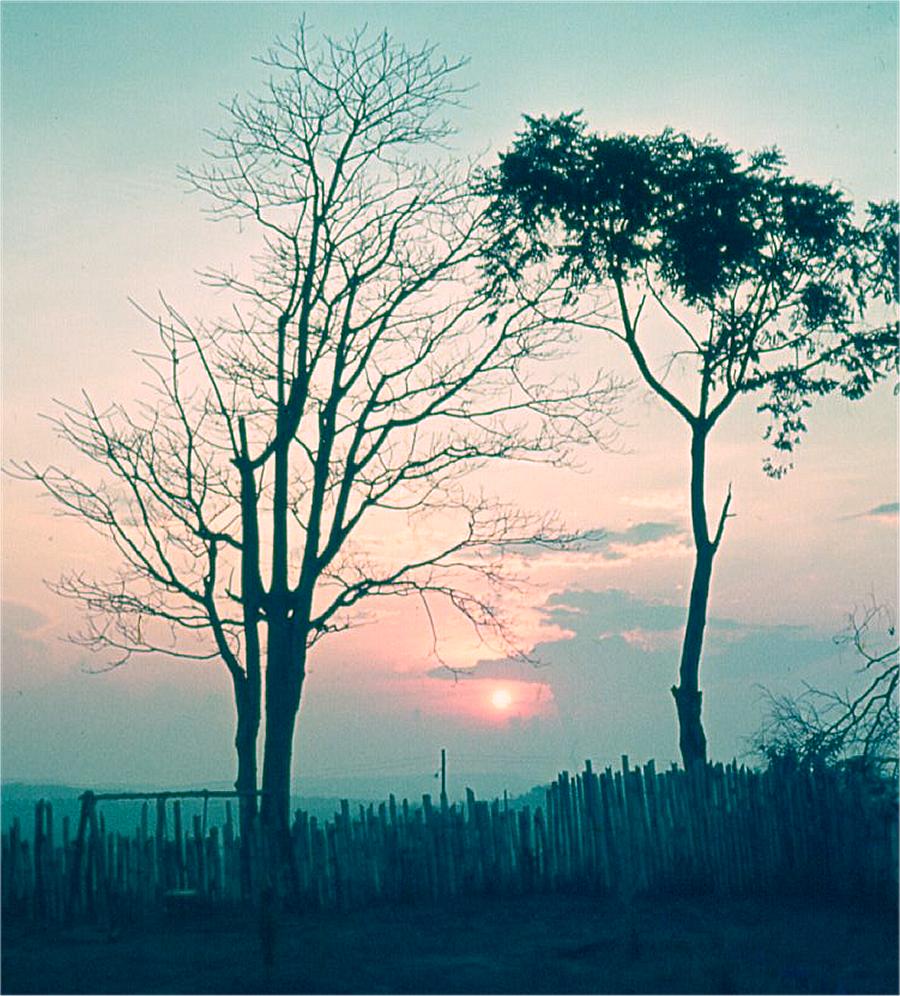 Aspecto de um pôr do sol visto das traseiras da messe de oficiais de Quimbele. Sector de Uíje - Carmona - Angola.