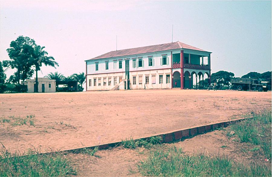 Aspecto do edifício da Administração de Quimbele. Imagem obtida a partir do edifício militar. Sector de Uíje - Carmona - Angola.