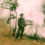 Operação militar na zona do Quitari comandada pelo Cap. Alves da 3ª Companhia do Bat. Caçadores 4511. Sector de Uíje - Carmona - Angola. Na imagem, alferes Oliveira.