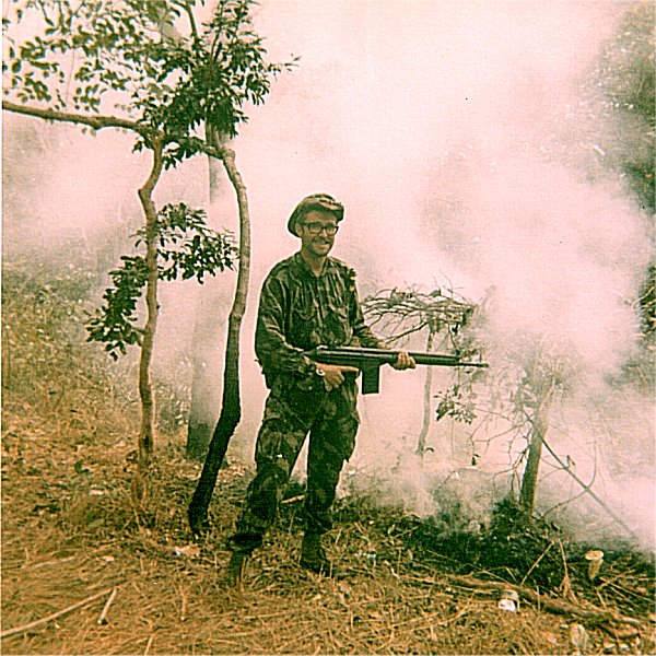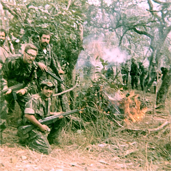 Operação militar na zona do Quitari comandada pelo Cap. Alves da 3ª Companhia do Bat. Caçadores 4511. Sector de Uíje - Carmona - Angola. Na imagem, alferes Oliveira. Furriel Galvão  - 5 de Maio de 1973. Ficheiro: Quitar04.jpg - 86 KB