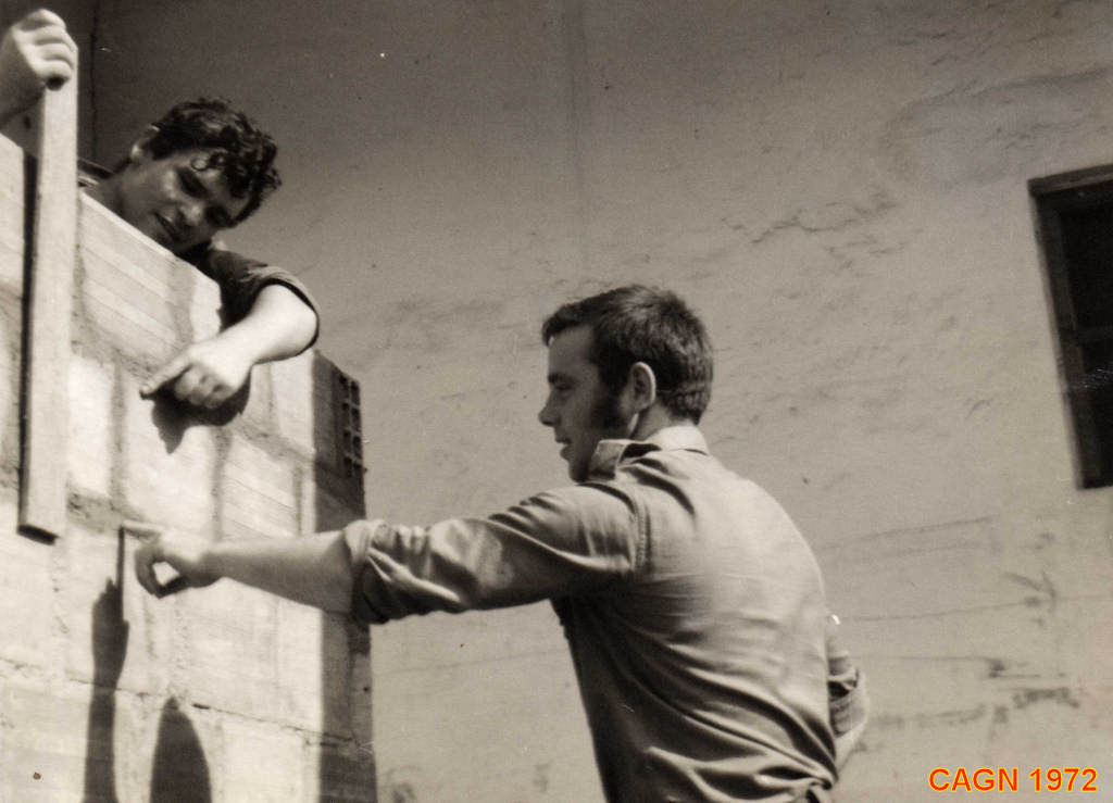 Carlos Gaiolas e Carlos Gomes (Rajadas) nas obras da padaria em Outubro de 1971.