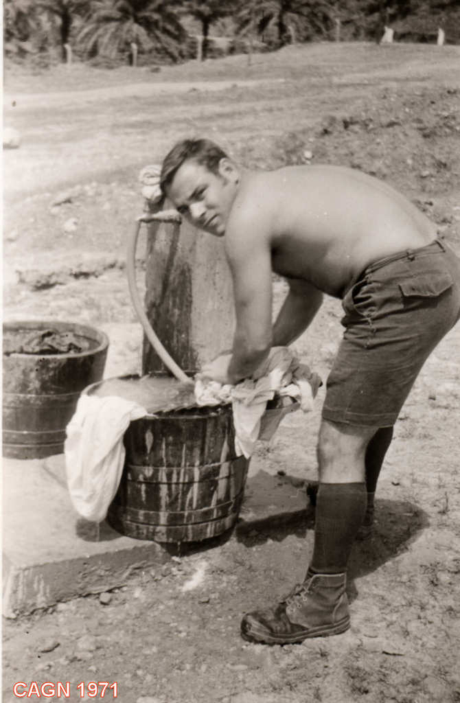 Carlos Alberto Gaiolas Neves a lavar a roupa no chafariz junto à padaria.