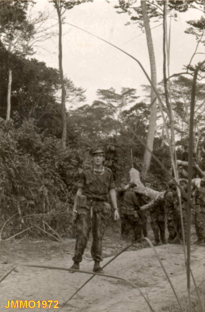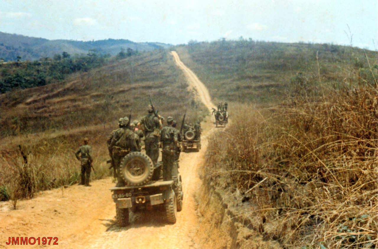 Coluna da Companhia de Caçadores 3387 na picada de Quixico para Picada para Quipedro e Lué, em 1972.