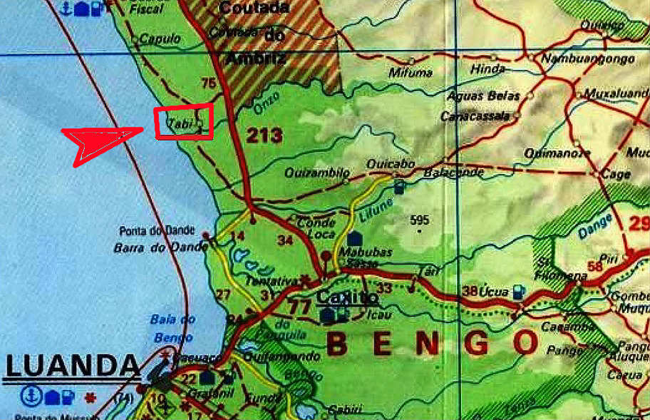 Ambriz. Mapa da região ao norte de Luanda −