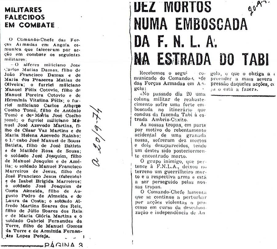 Batalhão de Caçadores 4613 que faleceram na