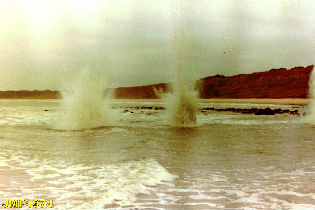 Pescaria na praia recorrendo à deflagração de granadas de mão.