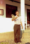 José Monteiro Pinto da 2ª Companhia do Batalhão de Caçadores 4613 na fazenda Tabi provando uma banana.