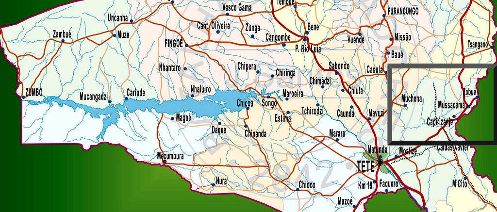 Mapa de Tete, mostrando a