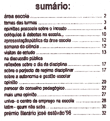 período lectivo de 1997/98. Nele se reflectem já as