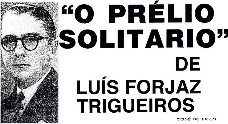 Em edição do Instituto de Cultura e Língua Portuguesa, com reprodução na capa de um óleo sobre madeira, de Dórdio Gomes. do Largo da Igreja de Nossa Senhora da Oliveira (Guimarães). oferece Luís Forjaz Trigueiros um volume – O Prélio Solitário, – que reúne conferências, intervenções académicas, crónicas ensaísticas e artigos de um período compreendido entre 1967 e 1988, "Temas e tópicos de Literatura Portuguesa" é como Trigueiros o subintitula, e esses temas e tópicos ora nos trazem de volta Tomaz de Figueiredo, Vitorino Nemésio, Afonso Lopes Vieira, Camões e o Brasil, os estudos queirosianos de guerra Da Cal, Tomás Ribeiro, Hipólito Raposo, Fernão Lopes, o Conde Sabugosa, Branquinho da Fonseca, ora apresentam pistas como "Para uma Redescoberta do Homem Português", já a "Literatura como Protagonista", "Transcendência e Sociedade", ou vocação e sacerdócio em Fernando Namora. Intencionalmente se não citaram "Fialho de Almeida, ou o Prélio Solitário", ou Carlos Malheiro Dias, ou "Para uma Geografia Literária do Minho", porque forçosamente arrastam a outros tipos de reflexão.