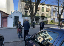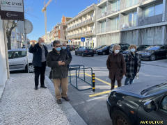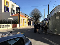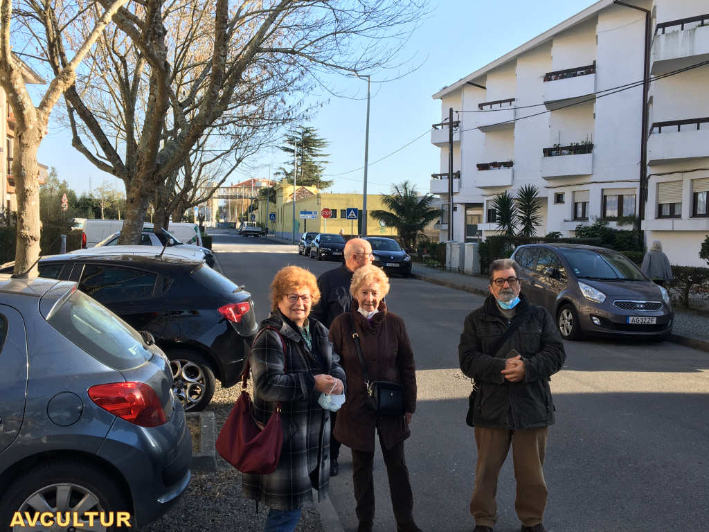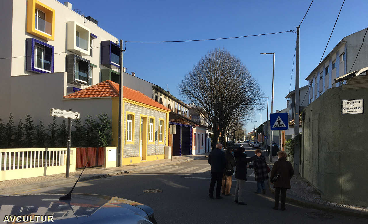 1. O Grupo na Praceta João Sarabando, vendo-se a placa toponímica. (Foto L. Taveira)