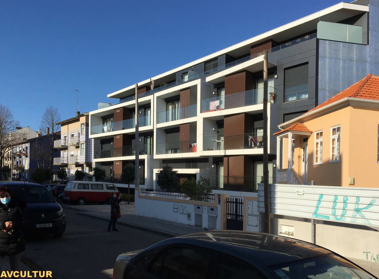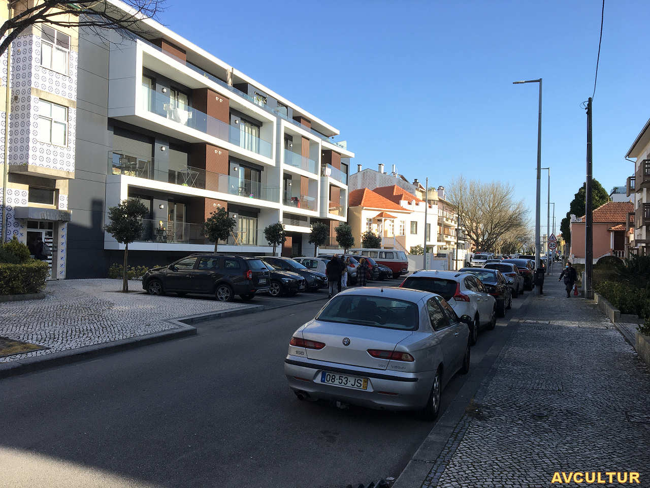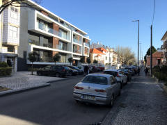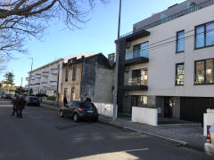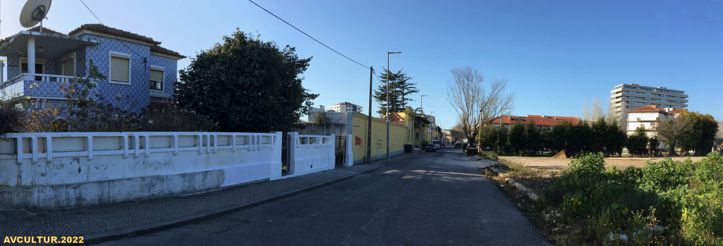25. Panorâmica da Rua Aires Barbosa de nascente para poente. Para uma panorâmica de 2014 a partir da passagem desnivelada para peões, mostrando o que havia em frente ao cemitério, clicar AQUI.