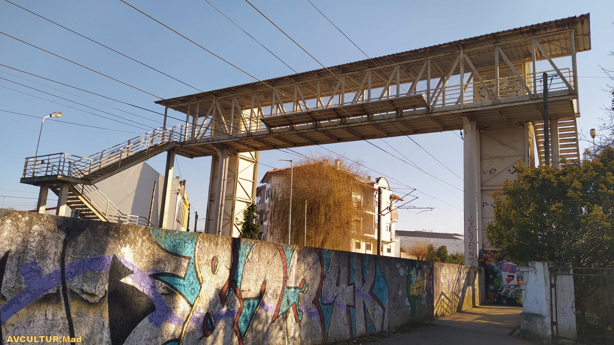 24. Onde está o muro, existia a passagem de nível para o lado nascente, para São Bernardo e Vilar. Do outro lado, fica a Rua de Vilar.