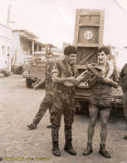 Três elementos da C. Caç. 3388. Da esquerda para direita: Vítor Carvalho, João de Oliveira e Sousa e o barbeiro.