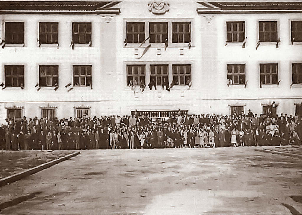 Visita ao novo edifício nas comemorações do centenário. Infelizmente, não encontrámos o original, para o podermos aqui apresentar em alta resolução.