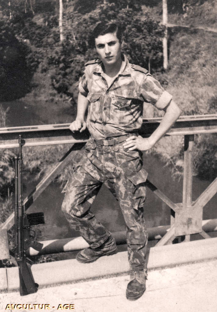 Adílio Galhano Eva, pertencente à Companhia de Caçadores 3387, durante a sua passagem pelo Lué.