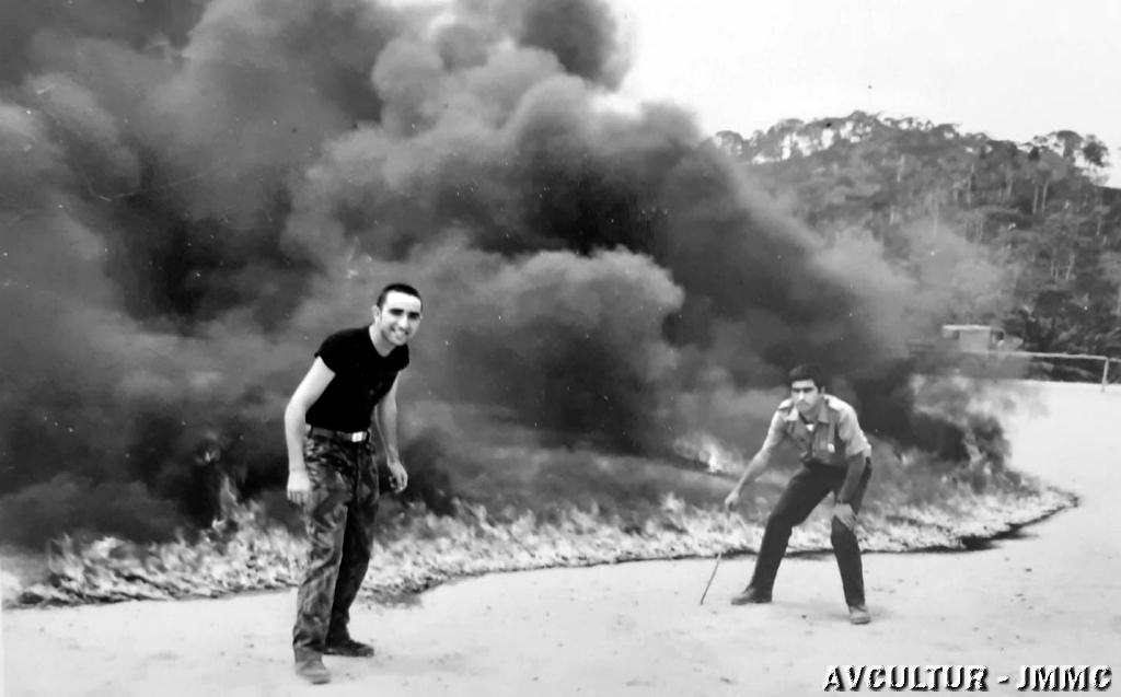 Elementos da Companhia de Caçadores 3387, durante uma queimada no Quixico, em 1972.
