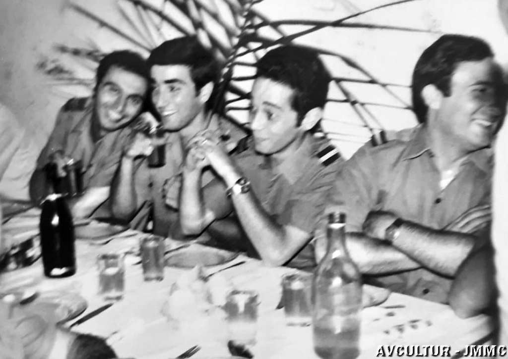 Elementos da Companhia de Caçadores 3387, durante um almoço de convívio em 1972, no Quixico. Da esquerda para a direita: ???; ???; ???; ???.
