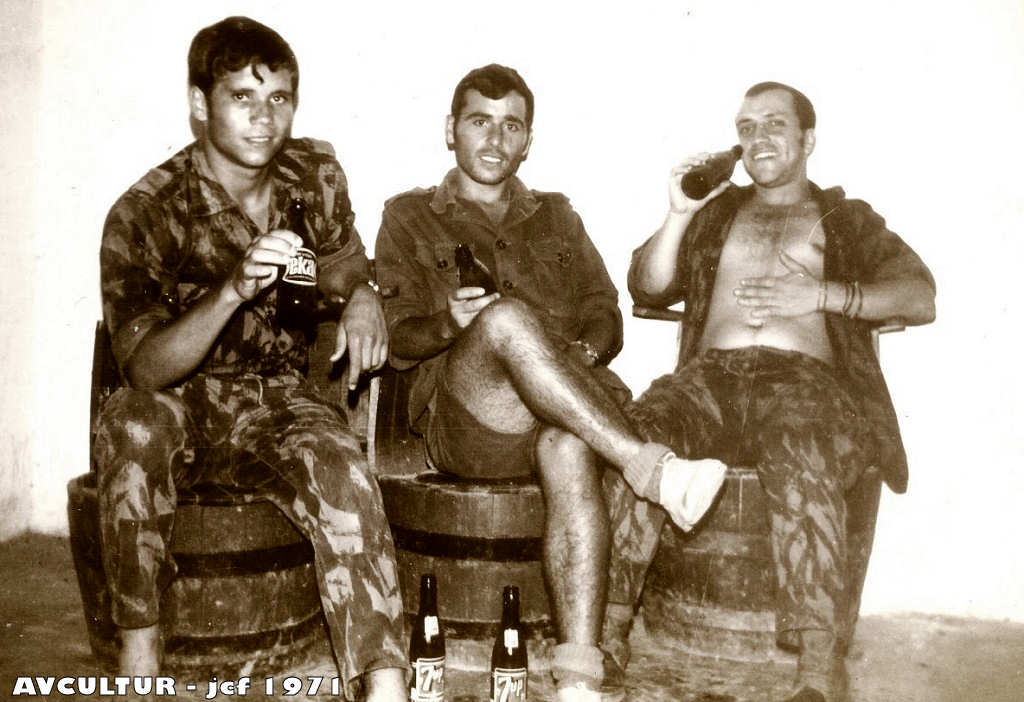 Elementos da Companhia de Caçadores 3387, num momento de lazer na vivenda Maria Celeste, no Quixico em 1971.