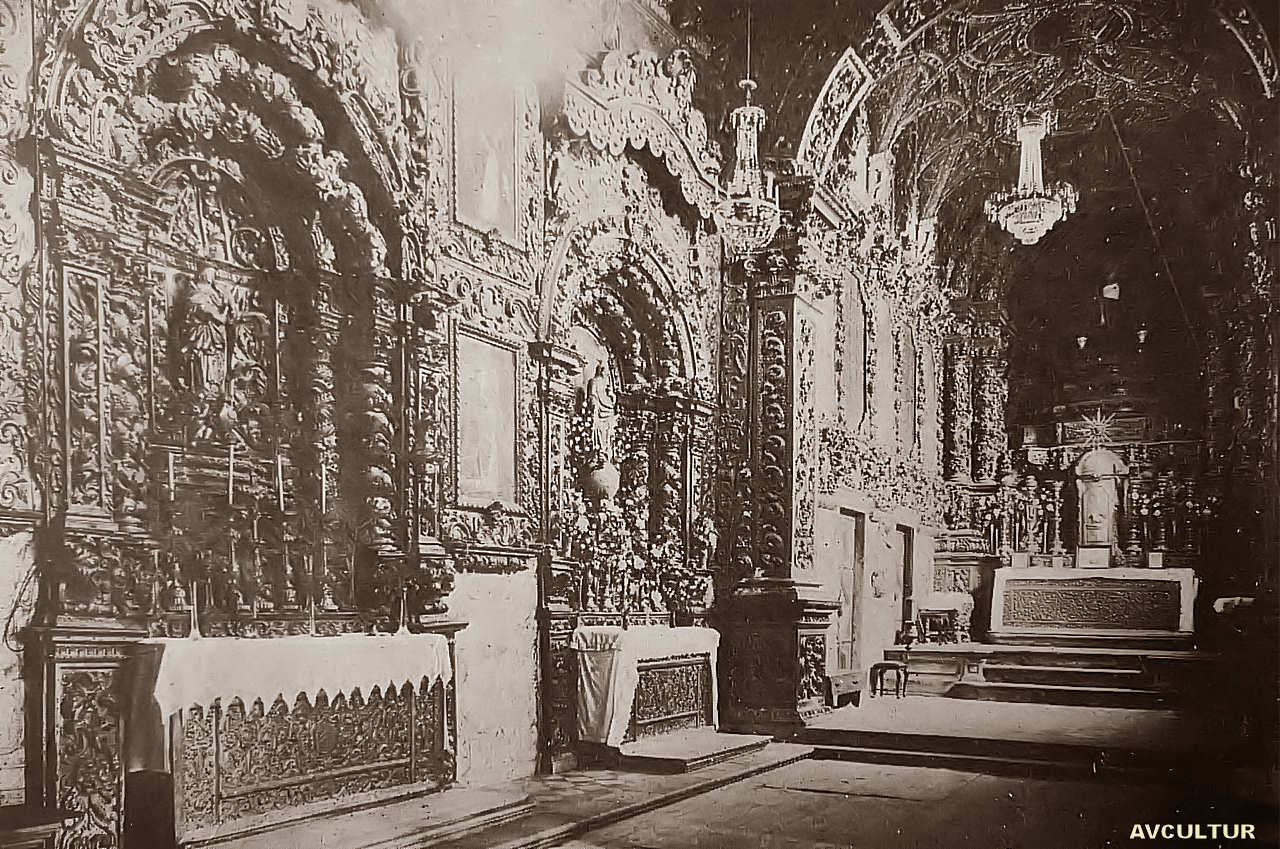 Magnífico tecto, em talha dourada, da Igreja do convento de Jesus, no Museu de Aveiro – ///////   Capela em preciosa talha dourada do convento de Jesus, no Museu de Aveiro. – ///////   Retrato restaurado de Stª Joana. Quadro de autor primitivo, depois de restaurado. Museu de Aveiro – ///////