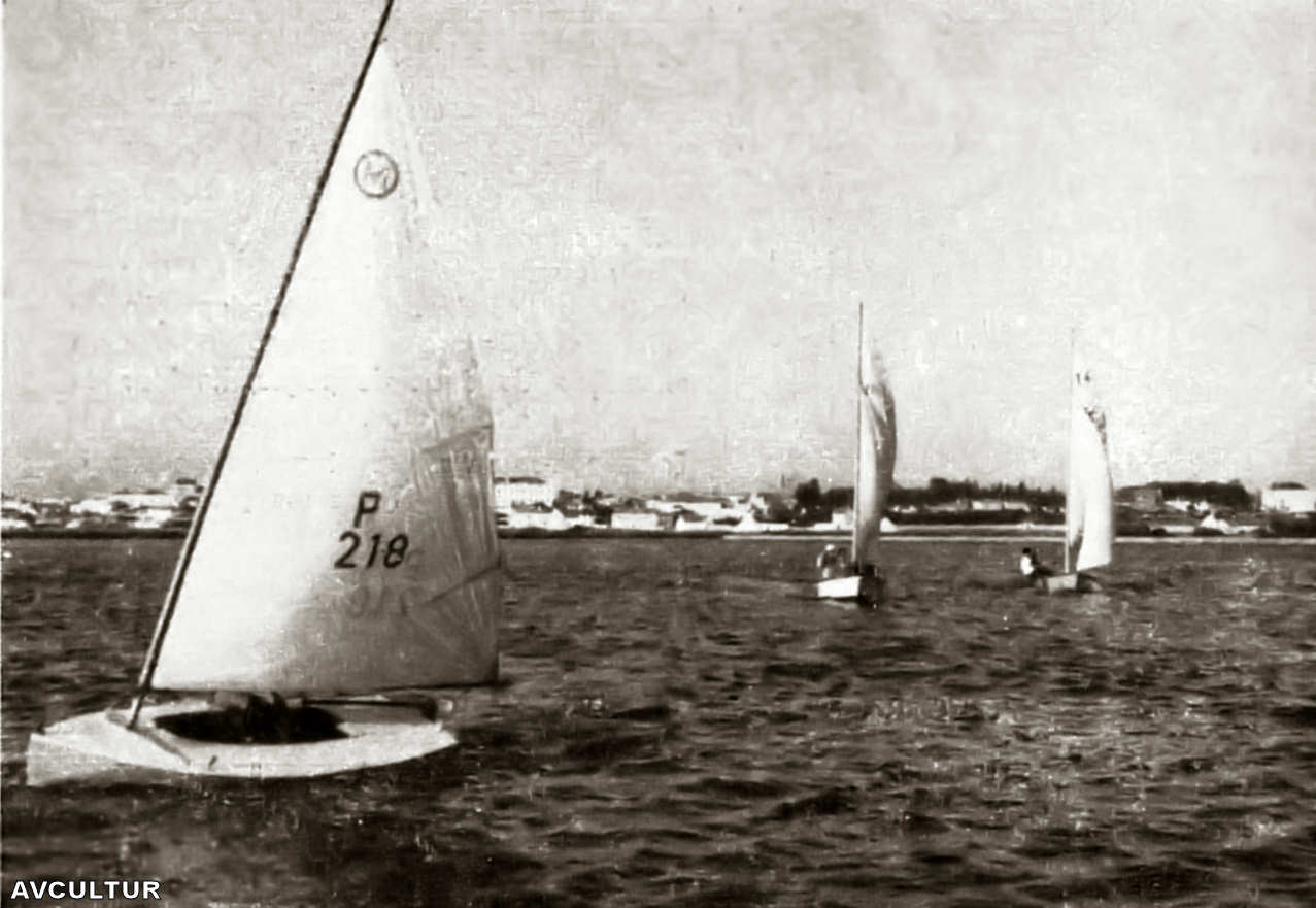 Barcos com moliço no canal central – ///////   Bateira no Canal das Pirâmides – ///////   Prática da vela na Ria de Aveiro – ///////