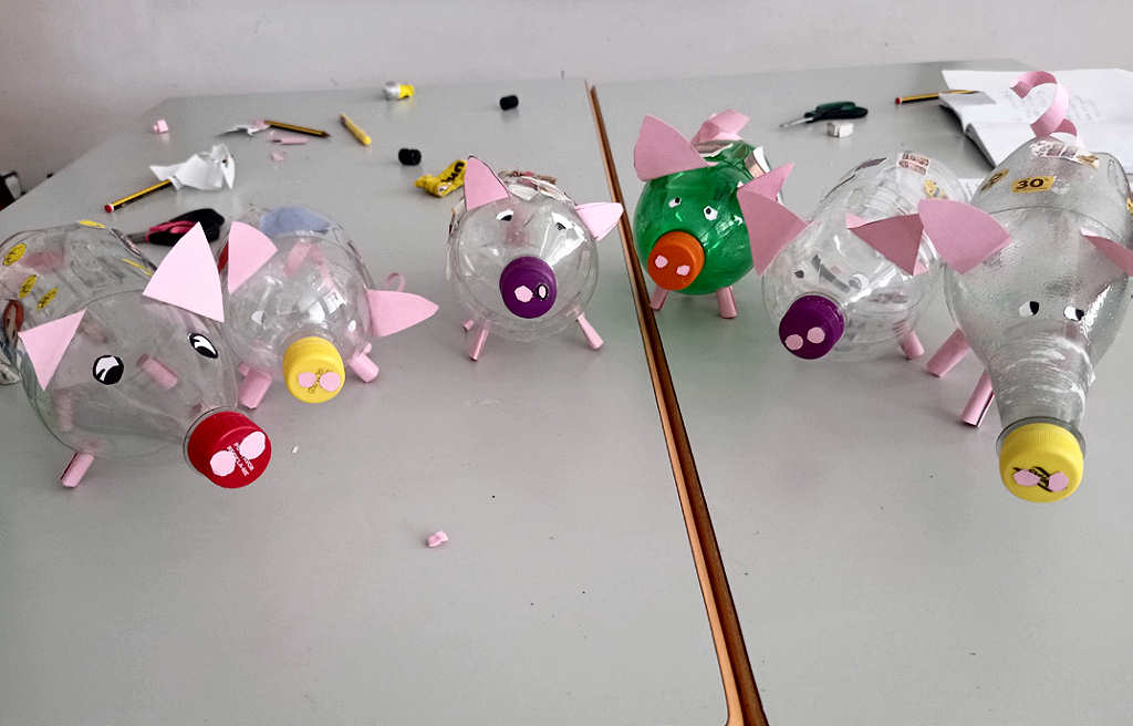 Depois construíram um porquinho mealheiro, utilizando