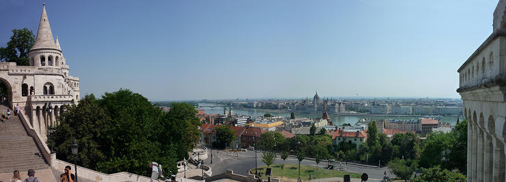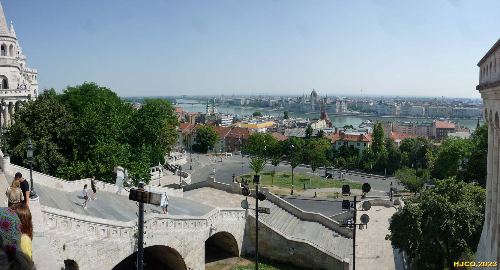 80. (10:30:38) - Panorâmica de Budapeste, vendo-se a escadaria que leva à base do Castelo de Buda.