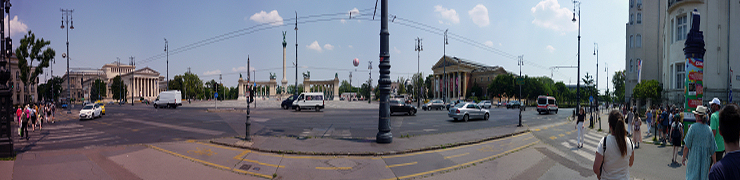 (12:17:28) Ufa! Finalmente, 12 minutos depois, chegámos ao objectivo antes do almoço: a Praça dos Heróis. - (Pan. 180º) –