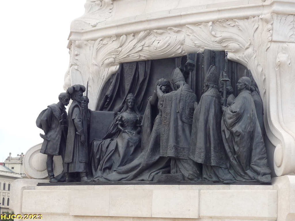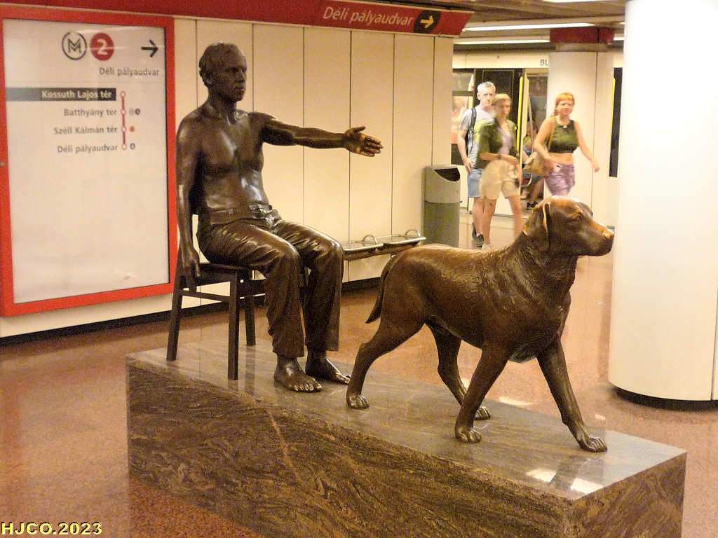 67. (10:38:46) Estátua de Gyula Andrassi, perto do Parlamento, em cuja base...