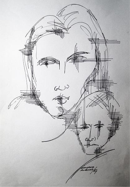 7 - Rostos I, 1987 - nanquim - 30x40 cm.